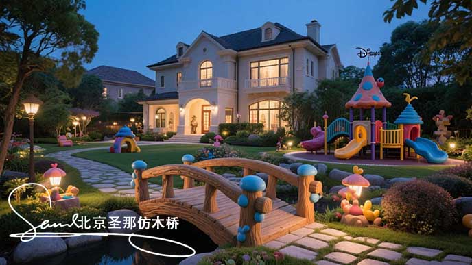 項目描述:當(dāng)水泥失去了冰冷的工業(yè)質(zhì)感,而被木質(zhì)的溫暖外皮所覆蓋時,一座以“木質(zhì)風(fēng)格的橋梁”便成為了游樂區(qū)中一個有趣的連接點。水泥仿木橋?qū)⑺嗟哪陀眯耘c木材的自然、親切感融為一體,并通過巧妙的設(shè)計,使“過橋”本身也成為了一項小型的冒險游戲。
